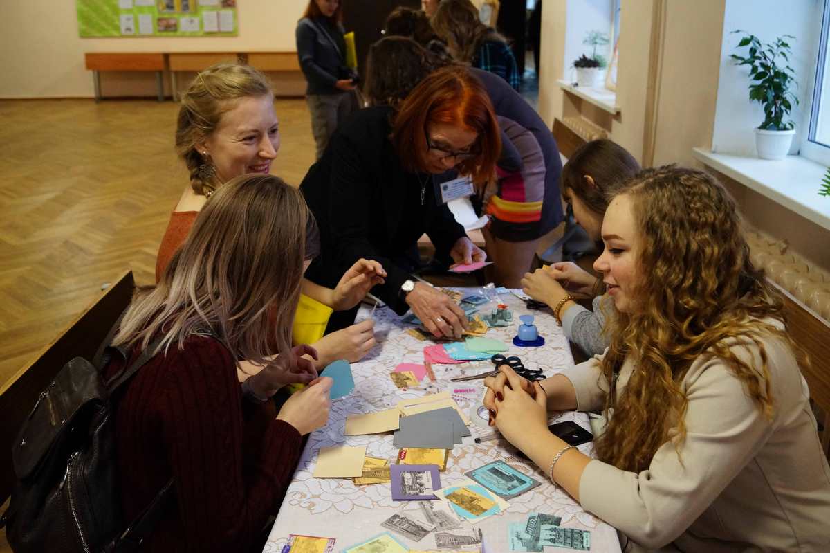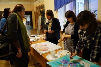 С особым интересом гости и участники методического объединения рассматривали выставку творческих работ студентов и преподавателей факультета «Мой город, я тебя люблю…», отражающую результаты работы в рамках творческого проекта, приуроченного Году малой родины. На выставке были представлены работы, выполненные в различных техниках декоративно-прикладного и изобразительного искусства. В рамках выставки работали мастер-классы «Кардмейкинг» (руководитель: преподаватель Бондарь М.А.) по изготовлению тематических открыток и «Роспись ткани» (руководитель: старший преподаватель: Дорофеева О.С.). Участники мероприятия могли попробовать свои силы в изготовлении открыток-миниатюр с изображениями памятных мест нашего города, которые будут напоминать им об участии в этом интересном мероприятии, а также наблюдать процесс поэтапного выполнения панно в технике свободной росписи и холодного батика, задать возникающие вопросы, увидеть технологические тонкости и узнать профессиональные секреты у специалистов.