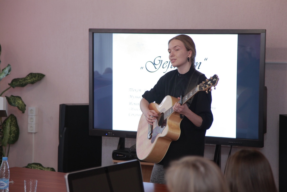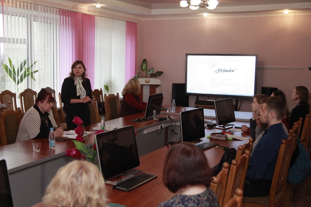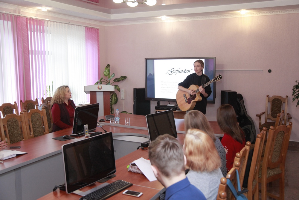Далее в рамках творческой разминки студентка 1 курса 4 группы специальности «Иностранные языки (немецкий, английский)» Соколова Аудроне предоставила вниманию участников семинара классическое произведение «Gefunden» (Johann Wolfgang von Goethe) в музыкальной интерпретации. Студентка 2 курса 4 группы специальности «Иностранные языки (английский, немецкий)» Дубровская Валентина прочитала наизусть произведение Энн Бронте «Self-congratulations». А студент 2 курса 4 группы специальности «Иностранные языки (английский, немецкий)» Колос Эдуард представил «Bewaffneter Friede» Вильгельма Буша.