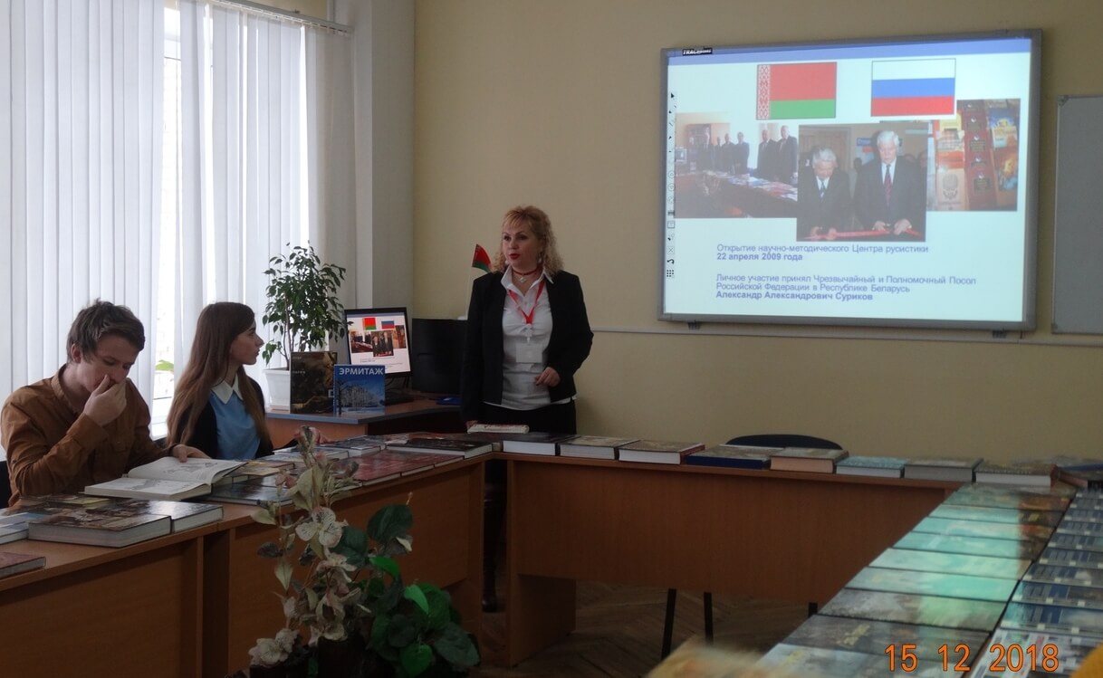 Затем встреча продолжилась в Центре русистики, где учащиеся познакомились с историей его возникновения, основными направлениями работы, а также с великолепными выставочными книгами, посвященными искусству, культуре, всемирной истории и др.