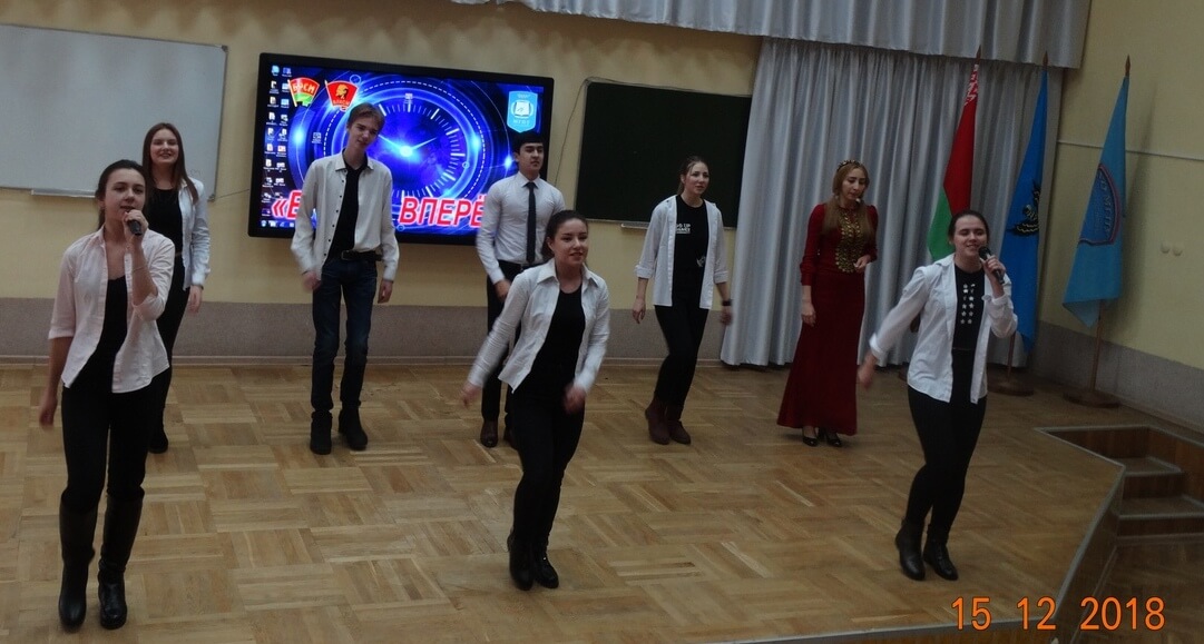 Финальным аккордом мероприятия стало выступление команды «Шаг вперёд», состоящей из студентов 1 курса 1 группы филологического факультета специальности «Русский язык и литература. Иностранный язык (английский)», наглядно продемонстрировавших креативность, находчивость, хороший вкус и чувство юмора. Студенты представили свой видеоролик, пели, танцевали, шутили. Незаурядные способности показали Куземко Лада, Инковцова Алина, Жамойдик Дарья, Королёнок Илья, Науменко Виктория, Иванова Наталья. Особый интерес у учащихся и абитуриентов вызвало выступление студентов из солнечного Туркменистана – Какабаевой Гозел и Озбекбаева Атанепеса, которые исполнили национальный туркменский танец.