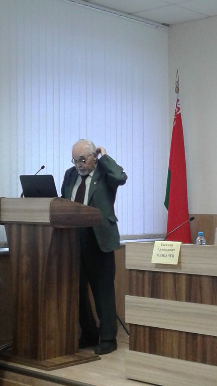 С докладом «Фундаментальная наука в современном образовании: проблемы и поиски путей их решения» выступил Евгений Аркадьевич Толкачёв, главный научный сотрудник Института физики имени Б.И.Степанова НАН Беларуси, доктор физико-математических наук, профессор.