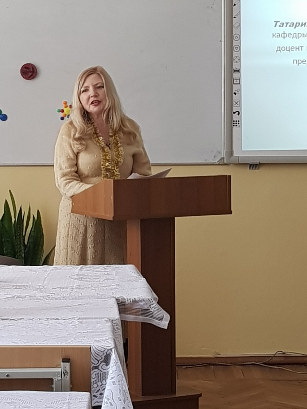 Интересными и актуальными стали доклады «Роль филиалов кафедры во взаимодействии высшей и средней школы» (доц. Т. И. Татаринова); «Ключевые компетенции будущего учителя-филолога» (зав.кафедрой Т.Н. Чечко); «Актуальные процессы в лексике и фразеологии» (доц. С.Б. Кураш); «От личного творчества – к творческой профессии: формирование креативности будущих учителей – филологов» (ст. пр. М. Г. Лобан).