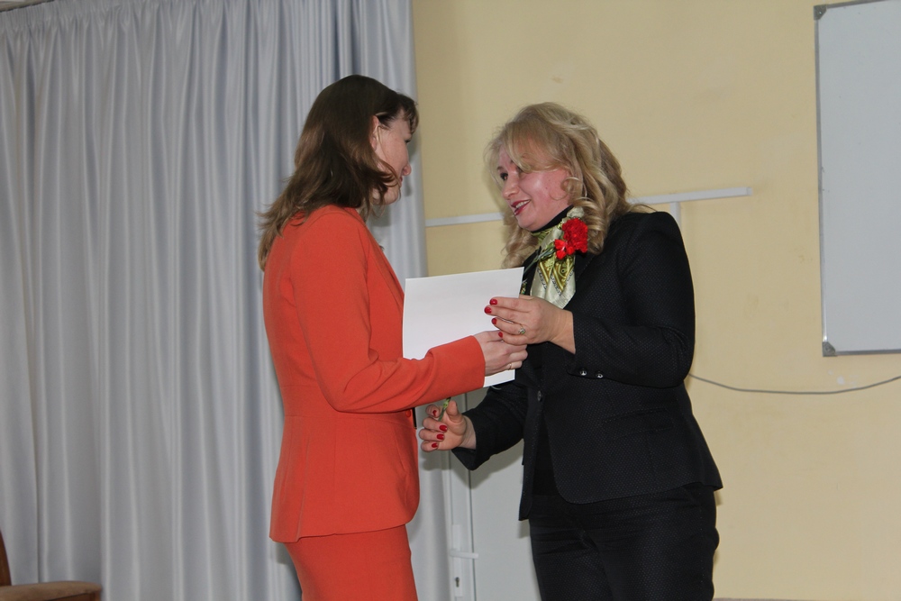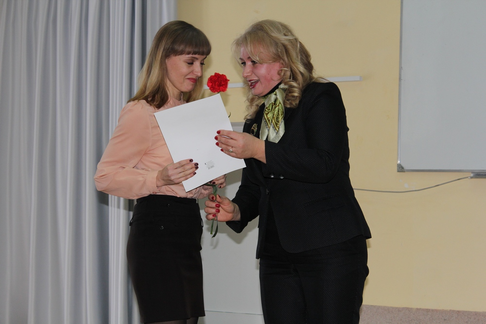 Грамоты и благодарности университета преподавателям, достигшим высоких показателей в научной деятельности и организации научно-исследовательской работы студентов, вручила Татьяна Владиславовна ПАЛИЕВА, проректор по научной работе, кандидат педагогических наук, доцент: доценту кафедры педагогики и психологии Елене Алексеевне КОЛЕСНИЧЕНКО, кандидату педагогических наук, доценту; доценту кафедры специальной педагогики и методик дошкольного и начального образования Наталии Семёновне ЖЛУДОВОЙ, кандидату педагогических наук; Ольге Геннадьевне ЯБЛОНСКОЙ, доценту кафедры иностранных языков и методики преподавания иностранных языков, кандидату филологических наук; Марине Михайловне ЩЕРБИН, доценту кафедры истории и обществоведческих дисциплин, кандидату педагогических наук.