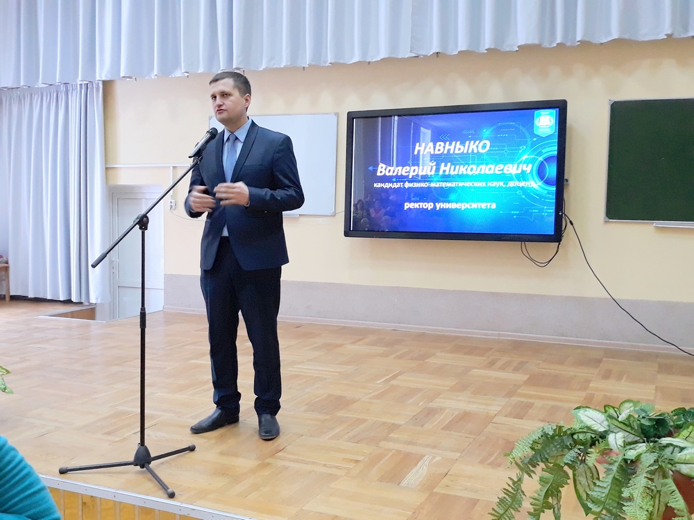 Председатель Мозырского районного Совета депутатов Наталья Алексеевна НАЗАРЕНКО поздравила коллектив университета с Днем белорусской науки и вручила руководителю университета приветственный адрес.