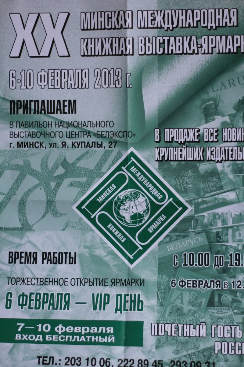 Юбилейная XX Минская международная книжная выставка-ярмарка пройдет 6-10 февраля 2013 года в Национальном выставочном центре "БелЭКСПО" (г. Минск, ул. Я. Купалы, 27).