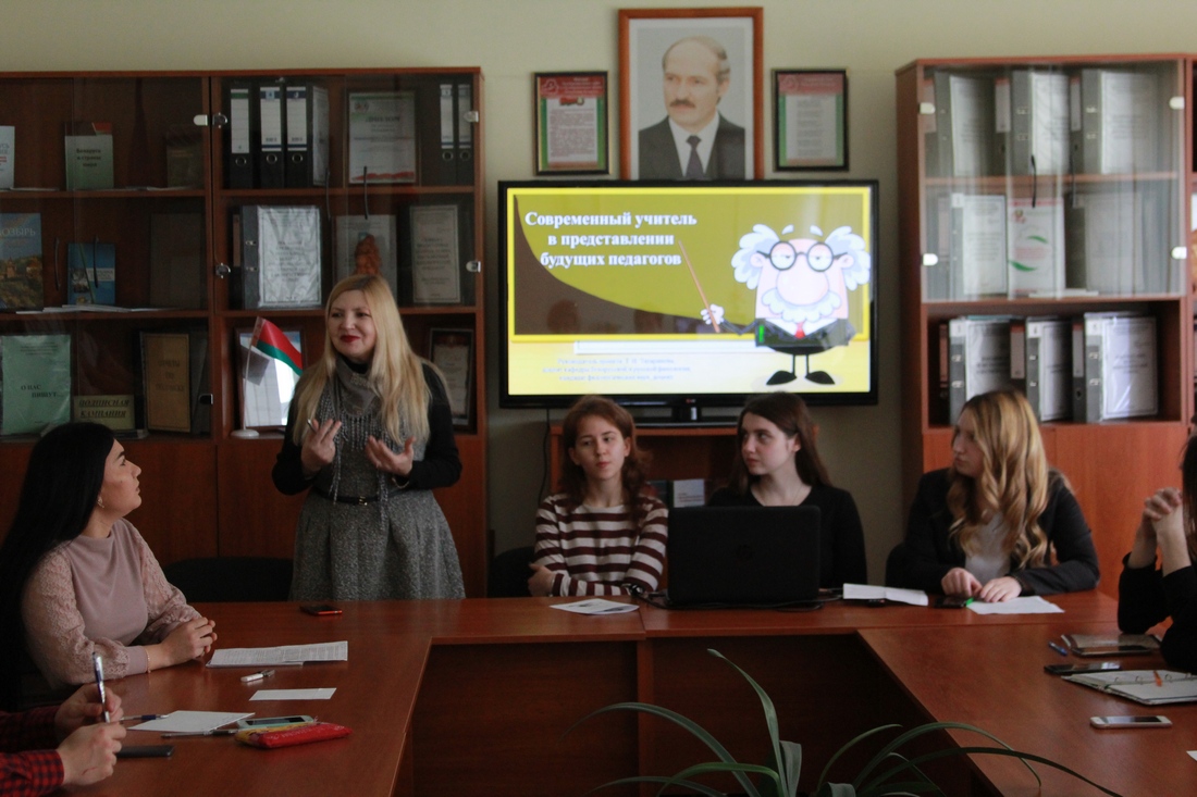 Тему продолжила доцент кафедры белорусской и русской филологии Т.И.Татаринова с сообщением «Современный учитель в представлении будущих педагогов», в котором проанализировала результаты проведенного на филологическом факультете анкетирования.