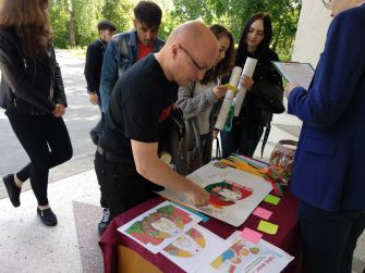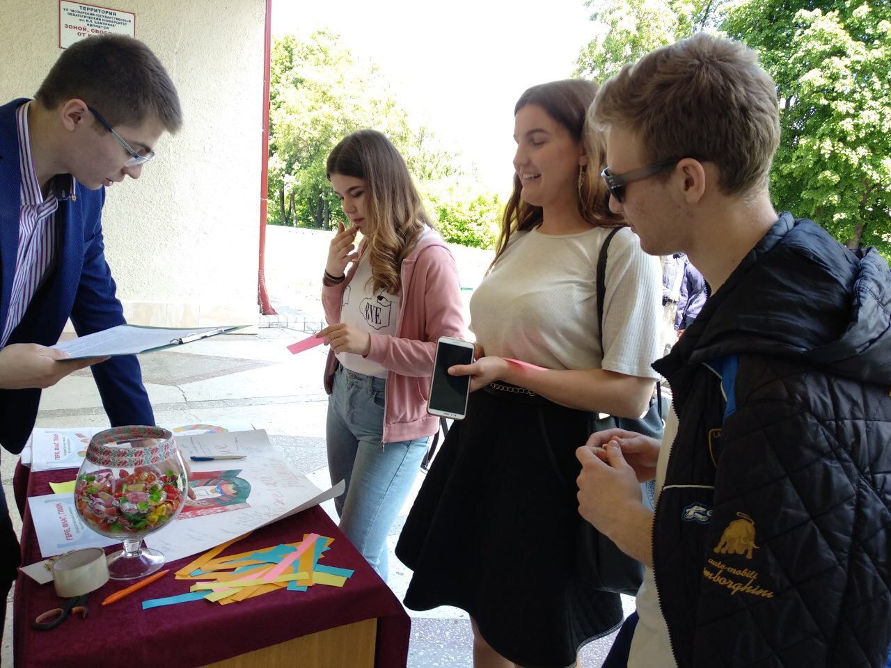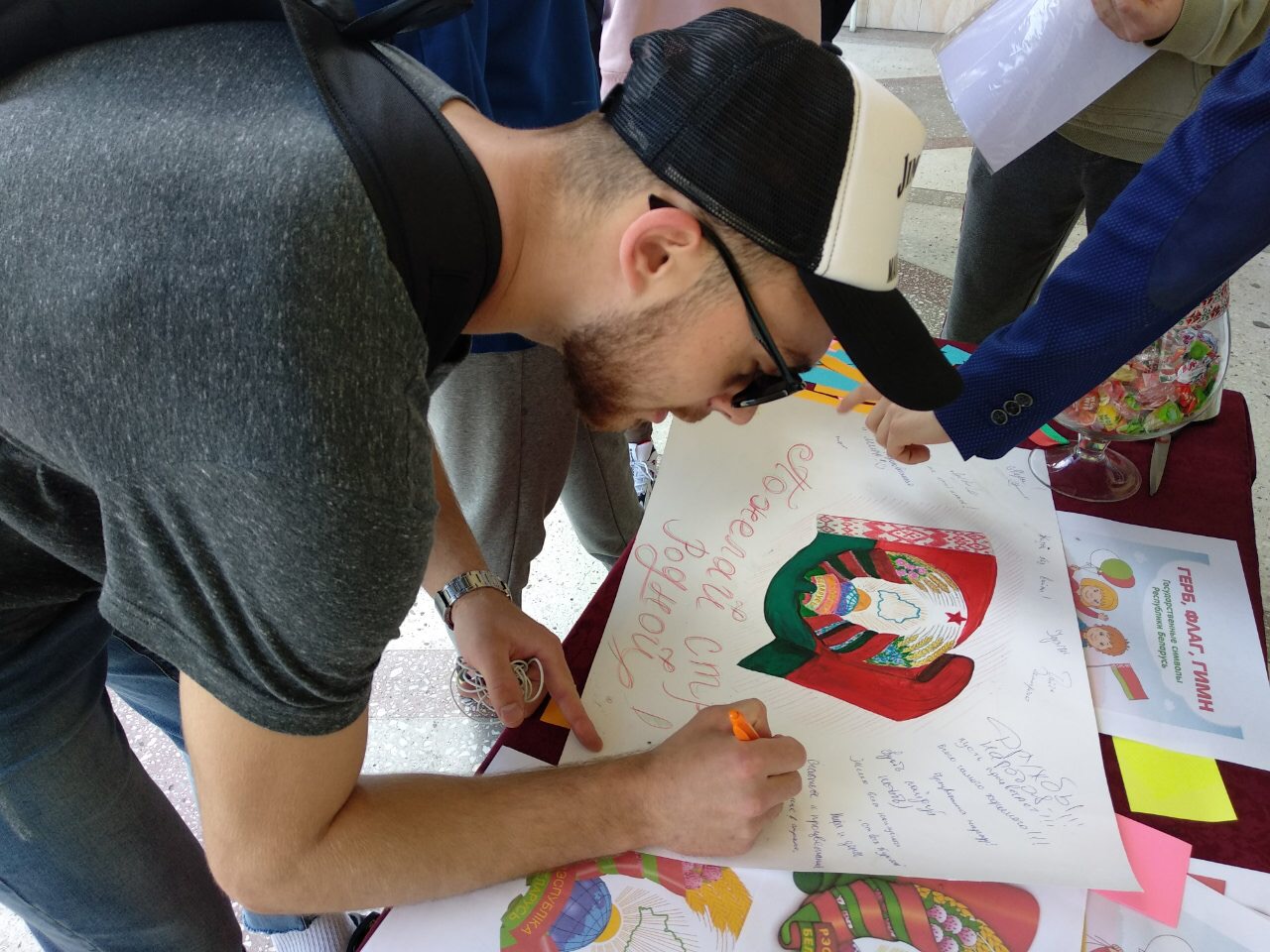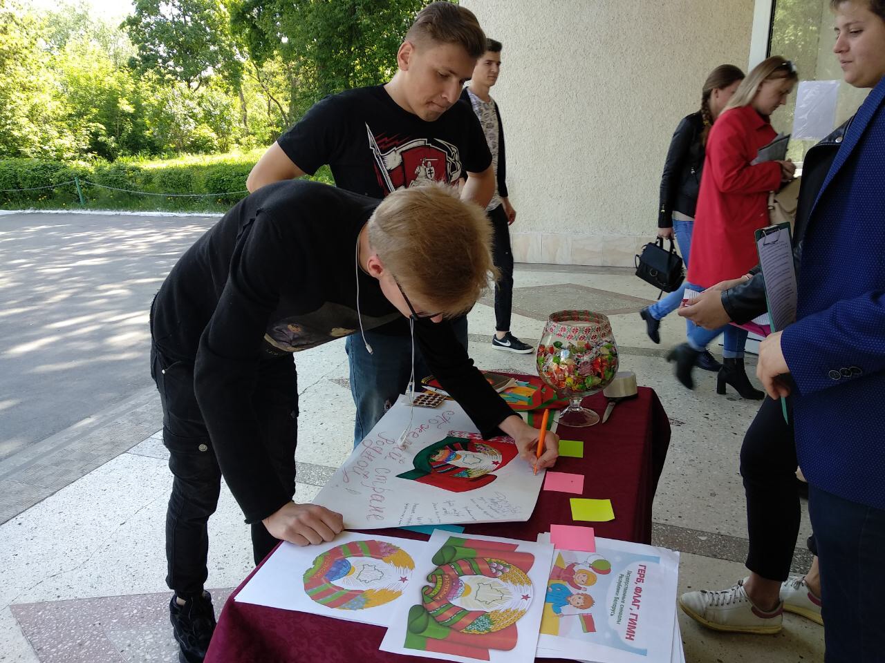 В связи с этой праздничной датой в нашем университете состоялась интеллектуальная викторина-акция, приуроченная ко Дню Государственного герба и Государственного флага Республики Беларусь. Студенты отвечали на вопросы, связанные с государственной символикой нашей страны, а также каждый желающий мог оставить на стилизованном плакате пожелания родной стране.