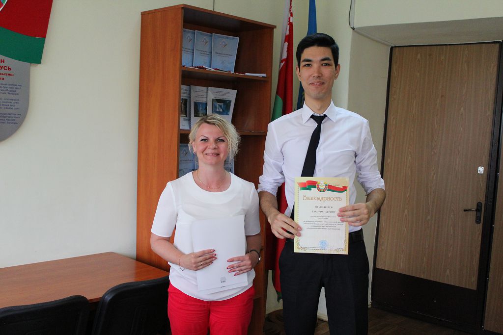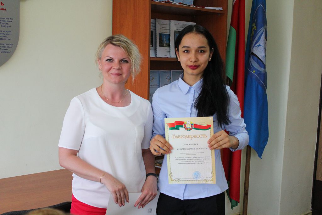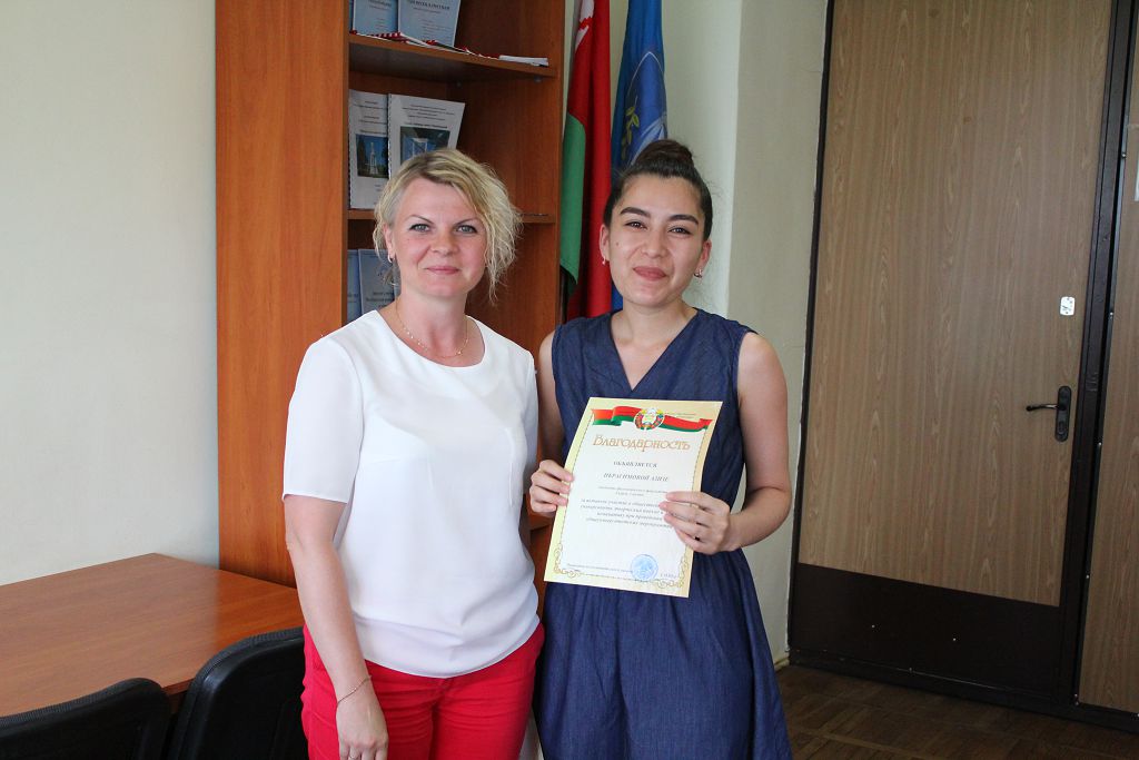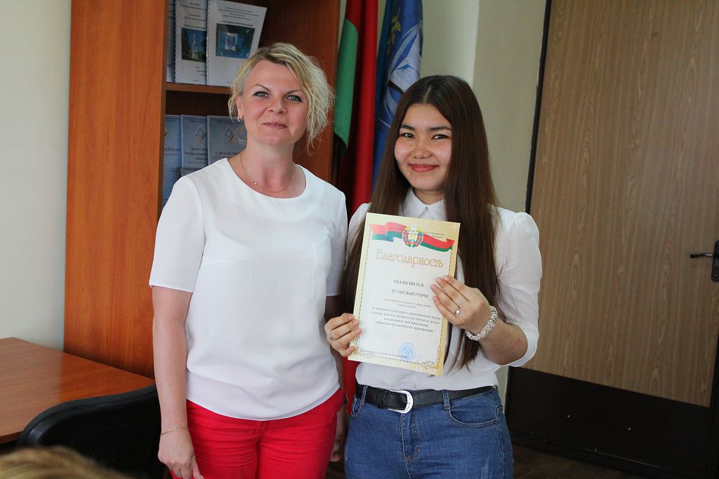 Начальник отдела по воспитательной работе с молодежью Матвеева С.В. вручила благодарности за активное участие в общественной жизни университета иностранным студентам, проявившим себя в течение этого учебного года.