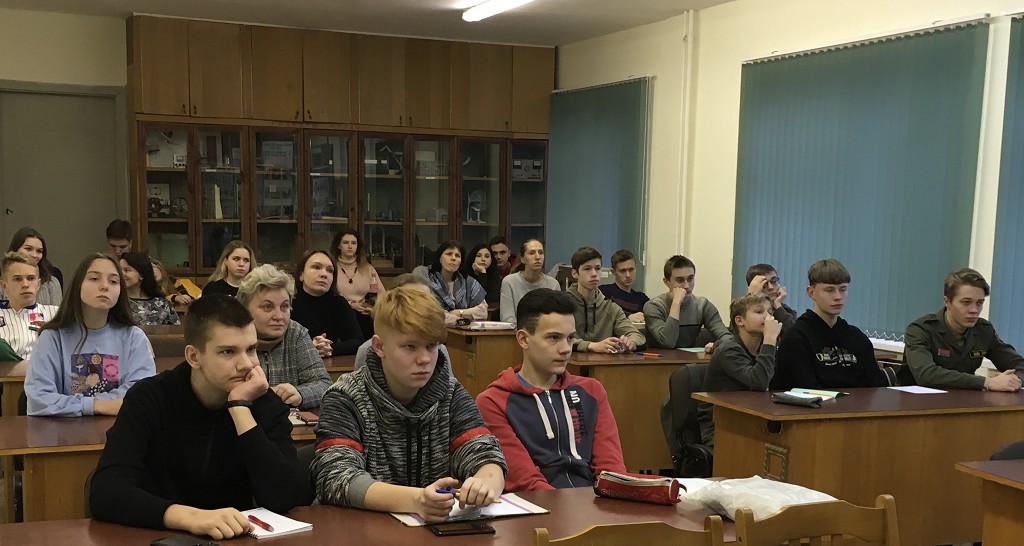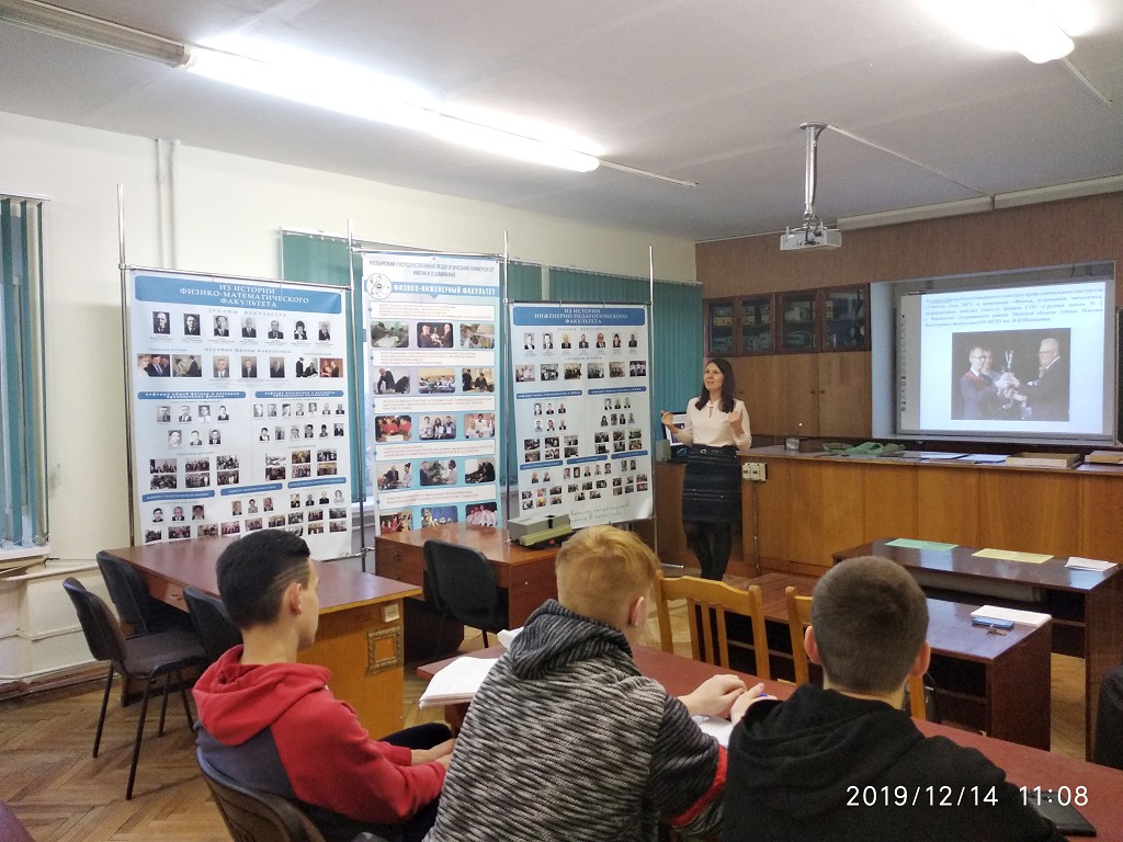 Заведующая кафедрой теоретической физики и прикладной информатики Овсиюк Елена Михайловна рассказала старшеклассникам о факультете, специальностях, по которым ведется подготовка в университете, проходных баллах, возможностях и перспективах трудоустройства.