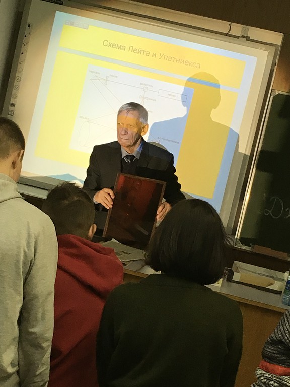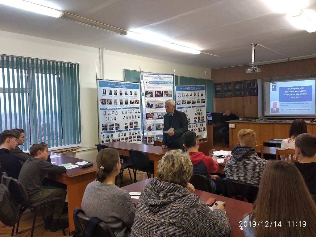 Шепелевич Василий Васильевич представил учащимся серию художественных объемных голограмм. Школьники с интересом слушали лекцию об отличиях голографии от фотографии. Обсуждались исследовательские задачи, в частности, взаимодействие шаров из книги Джирла Уокера «Физический фейерверк». Школьникам были продемонстрированы уникальные эксперименты «Картезианский водолаз», «Волшебный пропеллер», «Мячик как смертоносное оружие» и др. Лектор раскрыл также необходимость активной филологической подготовки школьников, готовых посвятить себя исследовательской работе в области физики. Лекция завершилась песней Владимира Высоцкого про физиков.
