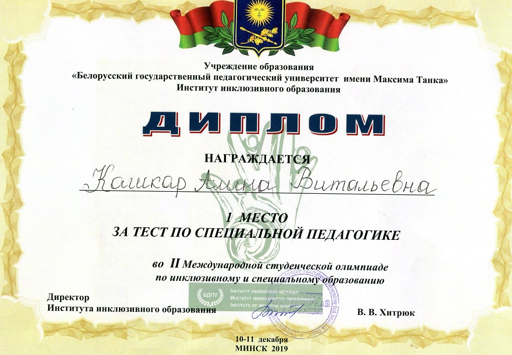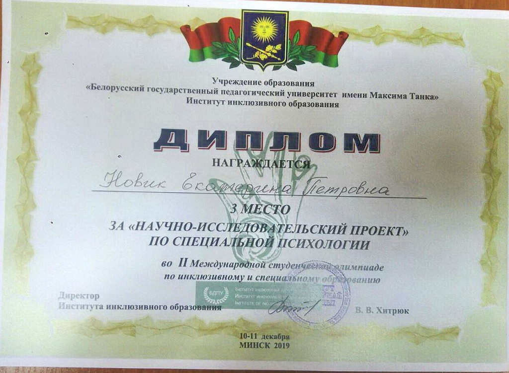 Поздравляем студентов КАШКАР Алину, Климову Ольгу и НОВИК Екатерину и их научных руководителей Жлудову Наталию Семеновну, кандидата педагогических наук, доцента и Цырулик Надежду Степановну, кандидата педагогических наук, доцента с высокими достижениями и желаем дальнейших успехов!