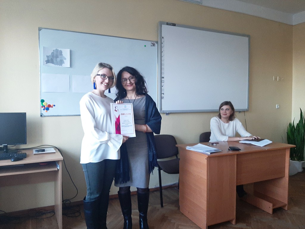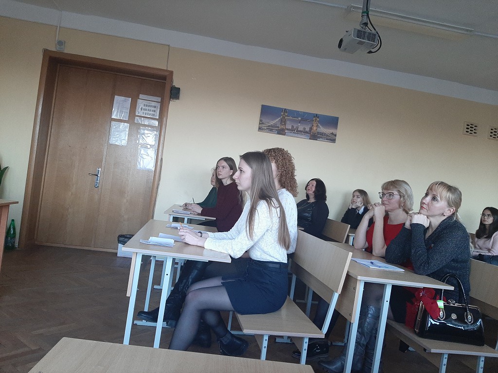 С докладами-презентациями выступили учителя-профессионалы: Ареховская Н.А. (учитель немецкого языка высшей квалификационной категории, УО «Мозырский государственный областной лицей»), Орлова В.Ф. (учитель английского языка квалификационной категории «учитель-методист», ГУО «Средняя школа № 14 г. Мозыря»), Кулеш Т.В. (учитель английского языка высшей квалификационной категории, ГУО «Средняя школа №7 г. Калинковичи»), Овсяник М.А. (учитель английского языка первой квалификационной категории, ГУО «Гимназия им. Я. Купалы г. Мозыря»). О первоочередных задачах преподавания иностранных языков в педагогических университетах рассказала Ковалевич И.О., заведующий кафедрой иностранных языков и МПИЯ, кандидат филологических наук, доцент. Поскольку привлечение студентов к участию в международных конкурсах и олимпиадах можно рассматривать как проектно-ориентированный способ обучения, была представлена драматизация фрагмента урока немецкого языка студенткой 4 курса Козловой А.В., дипломантом Всероссийской (с международным участием) методической олимпиады. В роли обучающихся выступили студенты 2 курса специальности «Иностранные языки (немецкий, английский)».