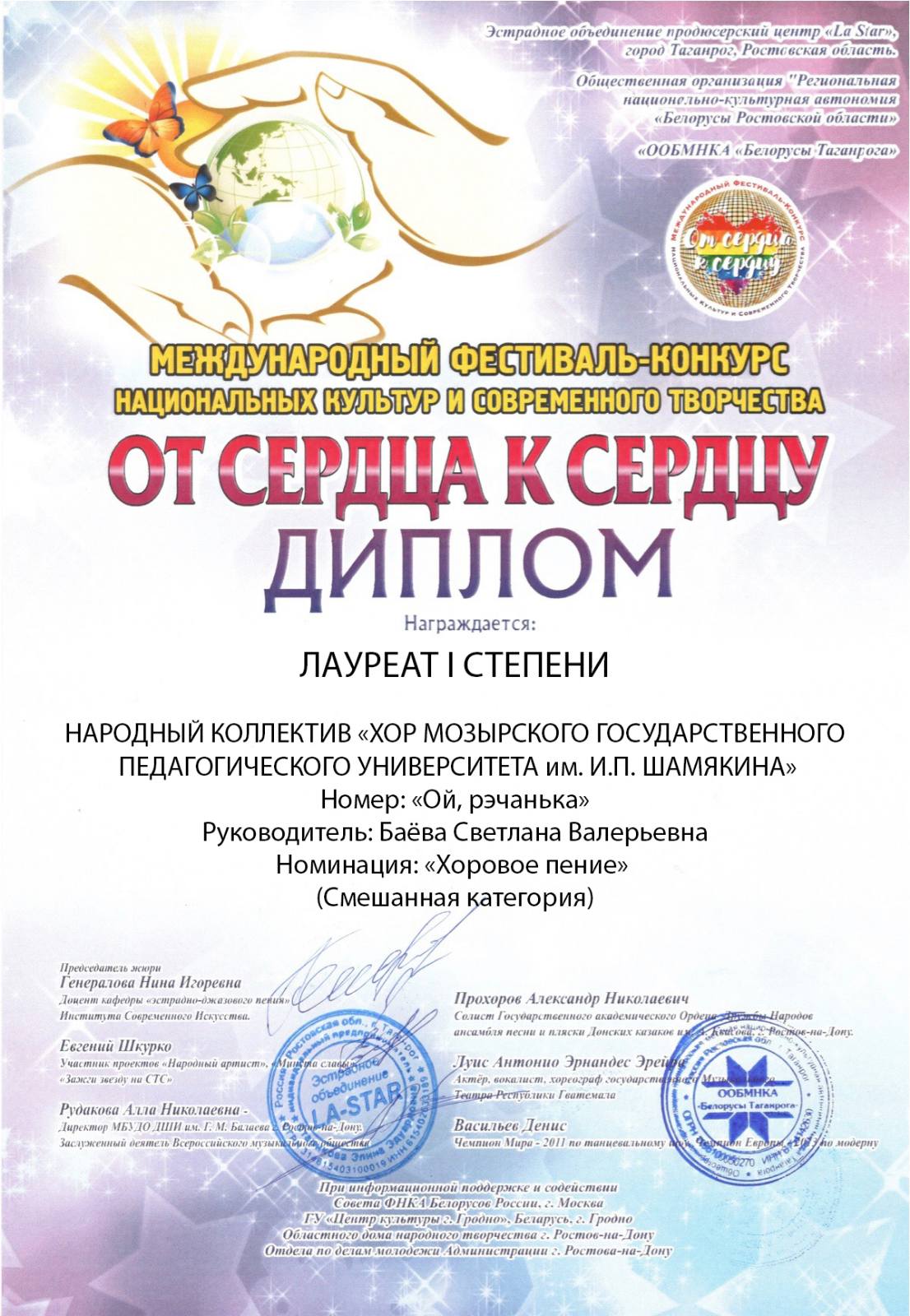 14-15 декабря 2019 года в городе Ростов-на-Дону (Российская Федерация) проходил Международный конкурс-фестиваль национальных культур и современного творчества «От сердца к сердцу».