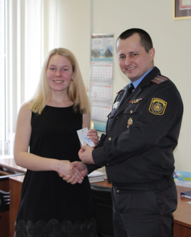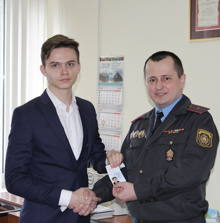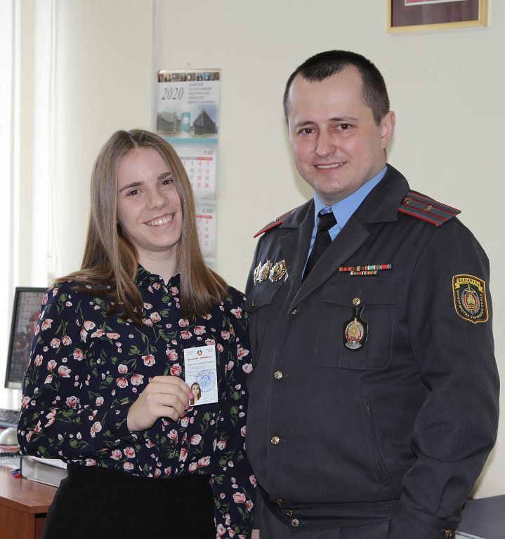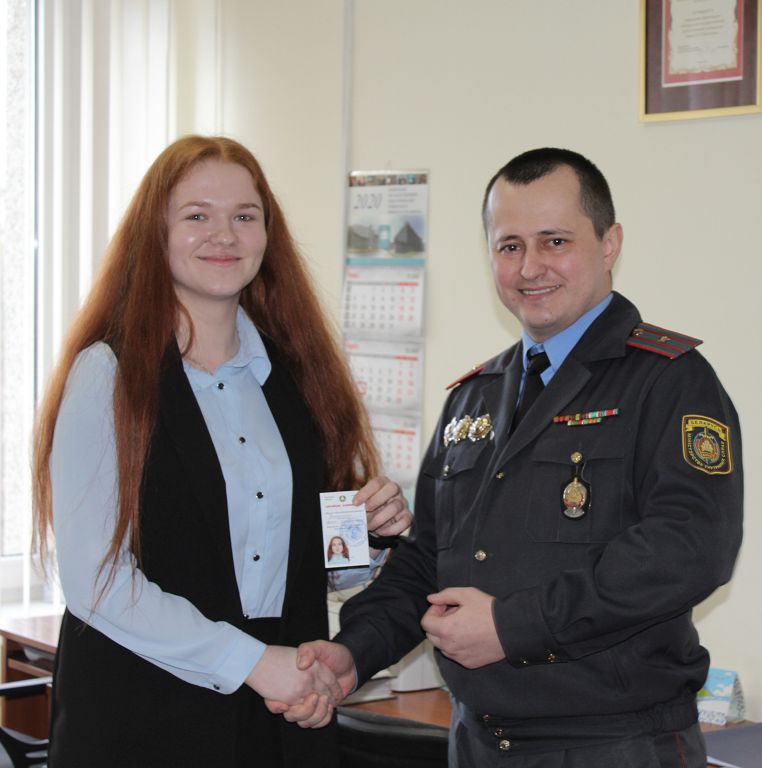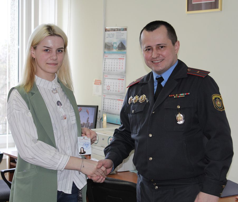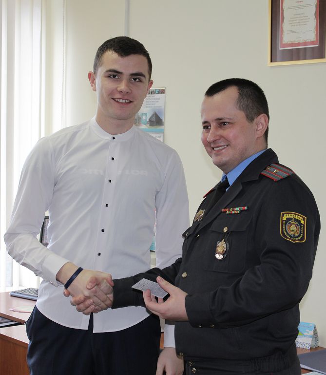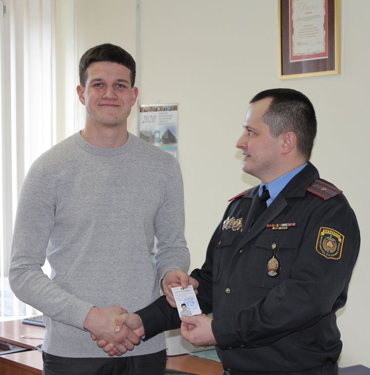 Мариненко Е.Н. провела информационную работу по включению студентов в ряды отряда быстрого реагирования по чрезвычайным ситуациям, который является частью службы по реагированию на чрезвычайные ситуации и розыску Республиканского общественного объединения «Белорусское Общество Красного Креста». Гушляк П.Н. рассказал студентам о своем профессиональном становлении, о службе во внутренних органах, а также вручил в торжественной обстановке членам ДД МООП им.А.П.Царенко удостоверения дружинников.