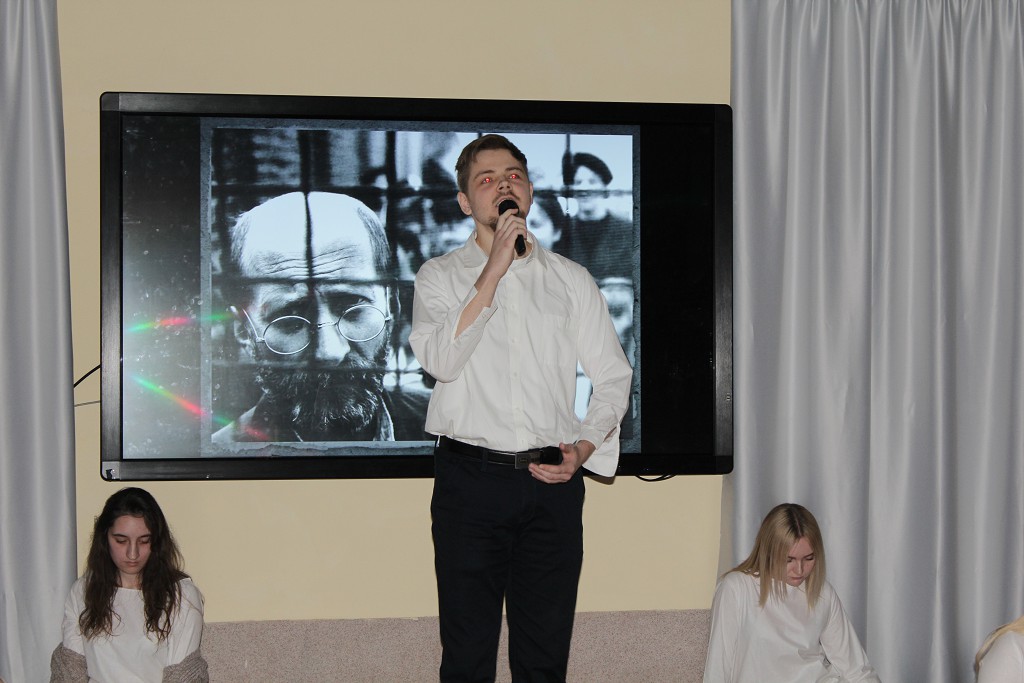 После лекции их ожидало творческое событие: выступление студенческого педагогического театра «Личность» кафедры педагогики и психологии, руководство которым осуществляется Ириной Александровной. Гости увидели литературно-историческую композицию «Жизнь отдаю детям: бессмертный подвиг Януша Корчака», которая очень, впрочем, как и прочувствованное исполнение ролей студентами-актерами. Встреча с театром закончилась увлеченной беседой студентов и гостей по вопросам развития высшего образования.