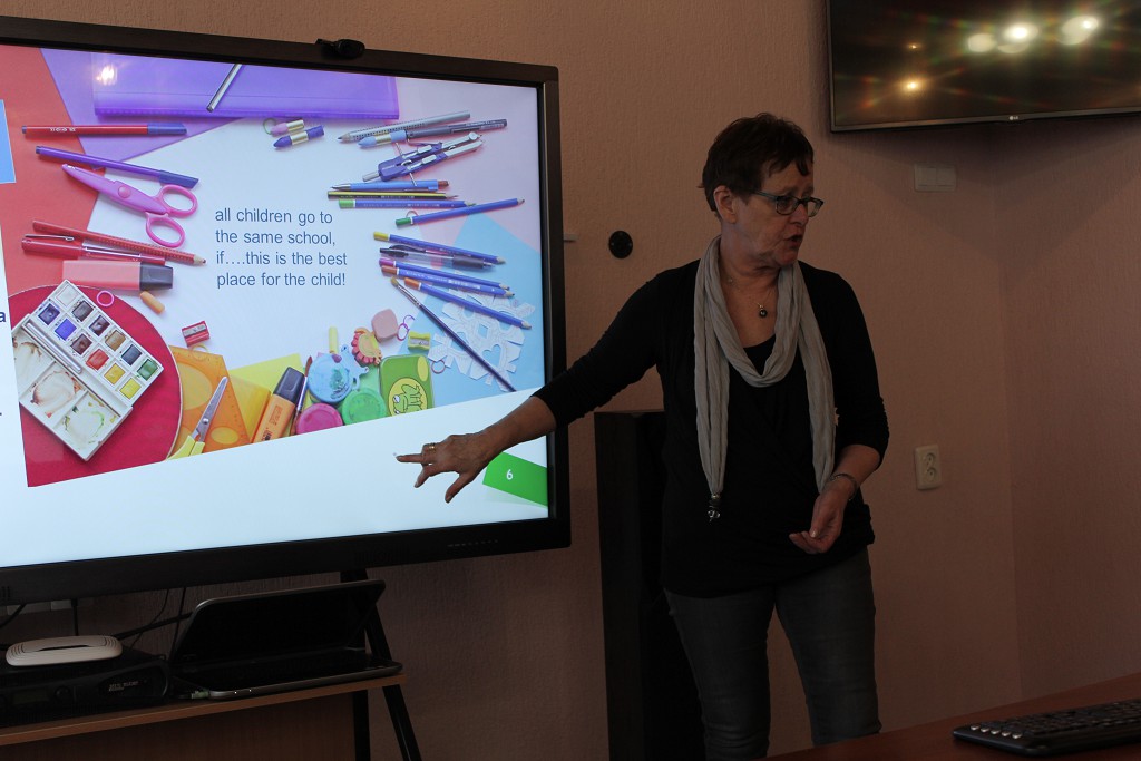 Во время посещения учреждений гости не только изучали опыт работы наших коллег, но и делились своим опытом. Так в ГУО «Специальный ясли-сад № 30 для детей с нарушением зрения г. Мозыря» перед педагогическим коллективом выступила Каролин Астрид Бройкер, имеющая опыт работы 16 лет в качестве заведующего детским дошкольным учреждением. Ею была представлена специфика работы учреждений дошкольного образования в Нидерландах.