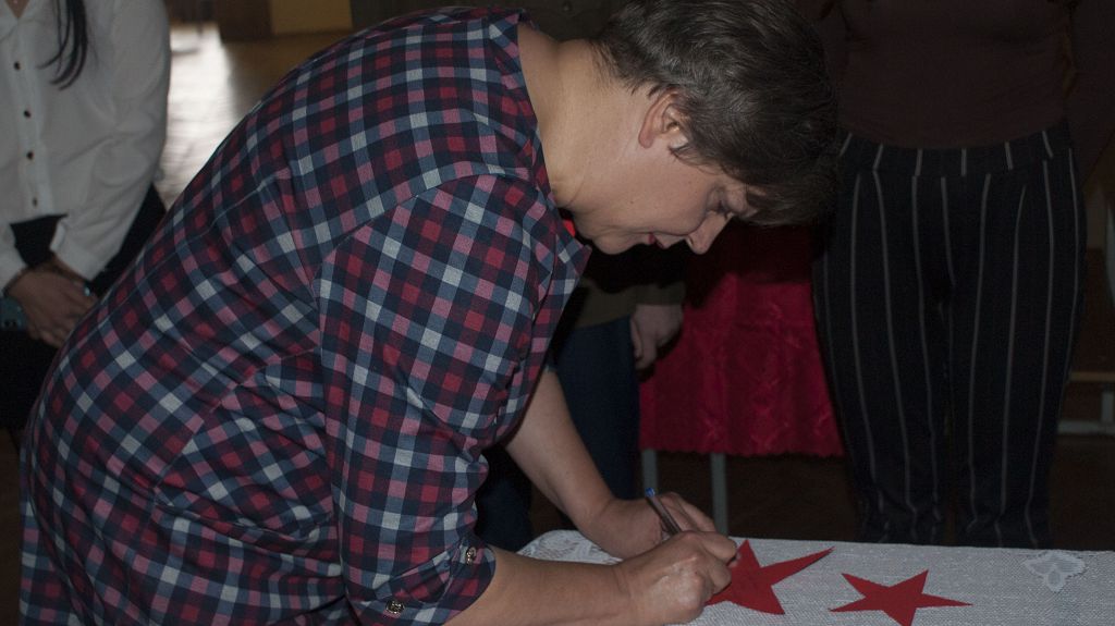 Был создан символический Мемориал Победы, посвящённый памяти своих родных и близких – героев Великой Отечественной войны. В этом году на Аллее Славы загорелось 35 Звёзд Победы, на которых были увековечены имена героев войны. В этот день звучали слова благодарности нашим ветеранам и всем тем, кто одержал Победу над врагом. У каждого была возможность прочувствовать, с каким трепетом и радостью отправлялись солдатами с фронта письма-треугольники своим родным и близким. А дома их всегда ждали…