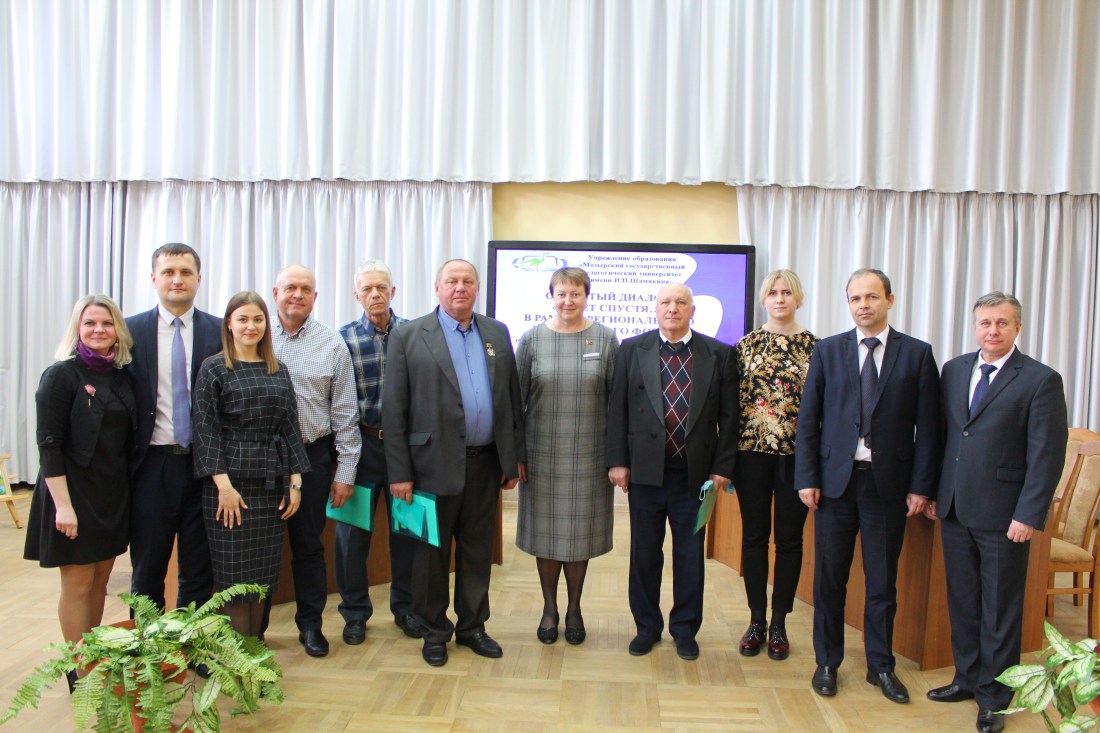 В рамках регионального молодежного форума «Молодёжь – возрождению, развитию, будущему!» состоялся открытый диалог «35 лет спустя…». Спикерами открытого диалога выступили: ректор университета Навныко Валерий Николаевич, председатель Мозырского районного Совета депутатов V созыва Кудина Галина Михайловна, заместитель председателя Мозырского районного исполнительного комитета Миллер Дмитрий Владимирович, врач психиатр-нарколог, преподаватель УО «Мозырский государственный медицинский колледж».