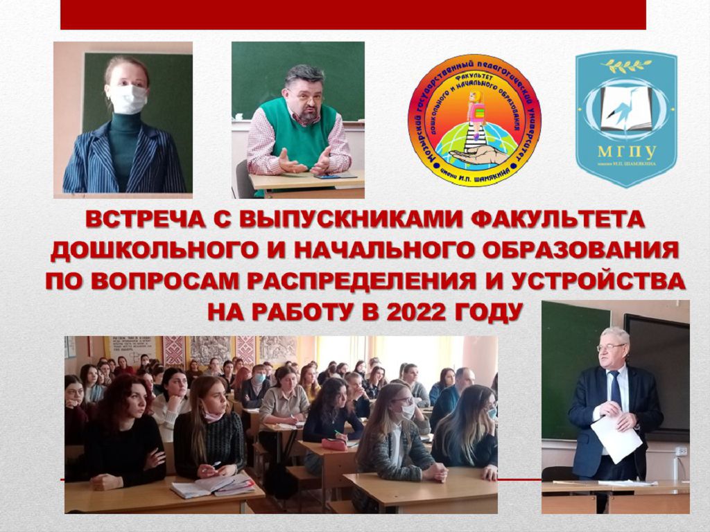 24 февраля 2022 года на факультете дошкольного и начального образования состоялась встреча выпускников по вопросам распределения и устройства на работу.