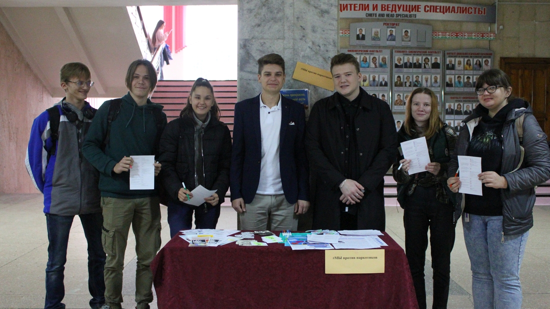В рамках декады по профилактике наркомании в учреждении образования «Мозырский государственный педагогический университет имени И.П. Шамякина» студентами-волонтерами университета 22.09.2022 была проведена интерактивная площадка «Вместе за здоровое будущее». Организаторы демонстрировали профилактические видеоролики, проводили блиц-опросы о вреде наркомании, раздавали буклеты и эмблемы против наркотиков.