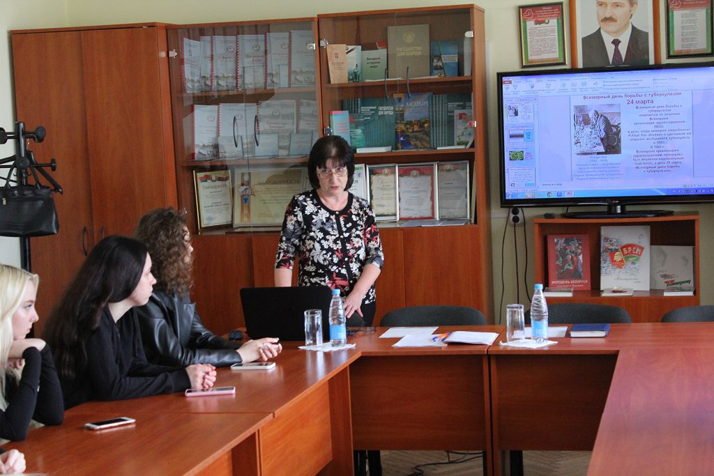 В преддверии этого дня на базе УО МГПУ имени И.П.Шамякина прошла информационная встреча на тему: «Туберкулёз и его профилактика» с участием врача-фтизиатора ММПТД Тимофеевой Анной Суреновной.