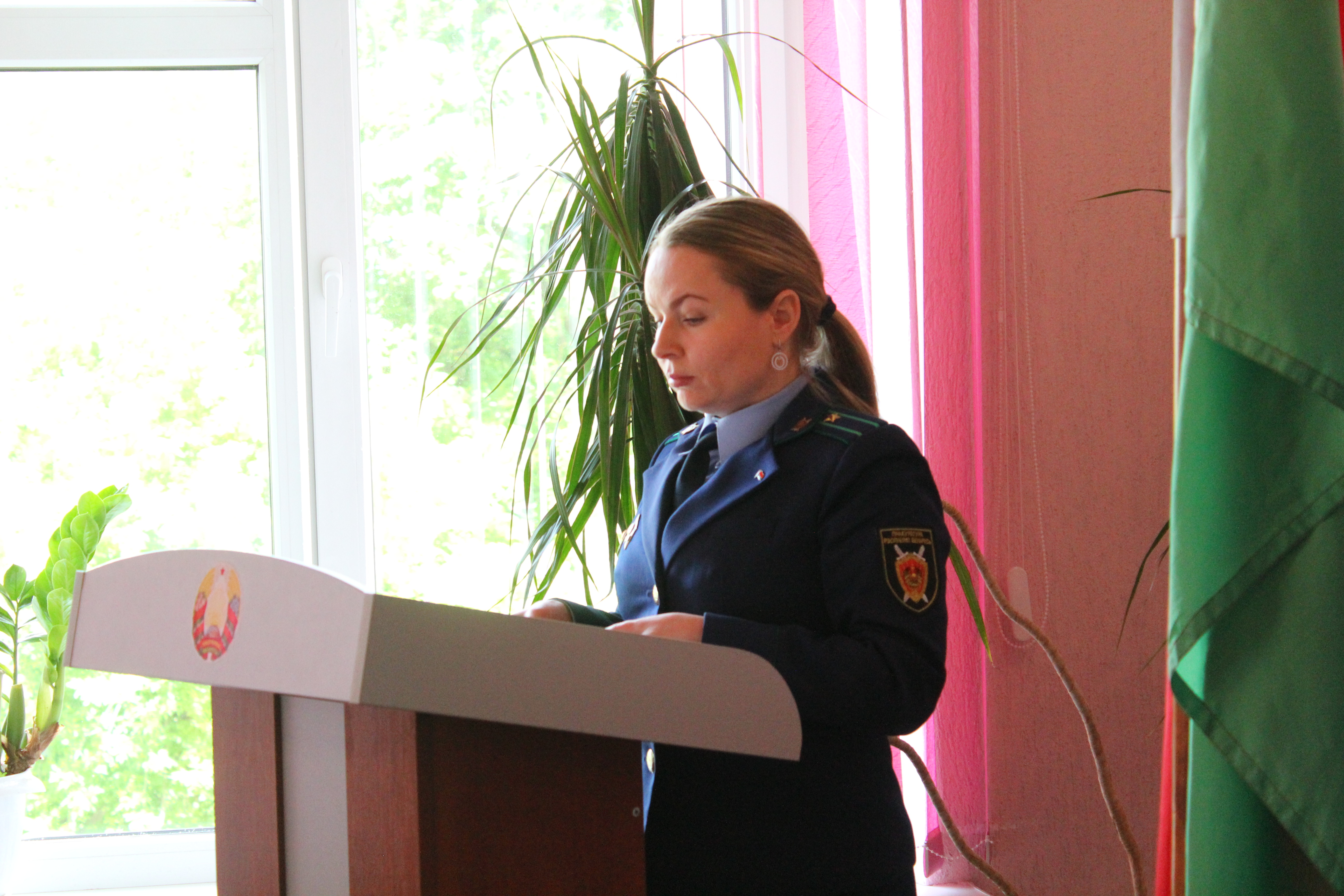 Кристина Александровна обсудила с присутствующими вопросы, касающиеся Концепции национальной безопасности, Военной доктрины Республики Беларусь и обновленной политической системы государства. В своем выступлении Наталья Юрьевна отметила, что знать государственные символы Республики Беларусь – это обязанность каждого гражданина нашей страны.