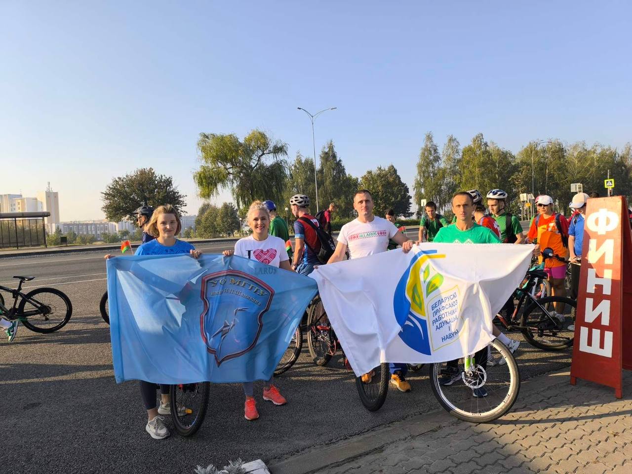 17.09.2024 проходил велопробег «В единстве народа-сила страны» в котором приняли участие: начальник спортивного клуба Дойняк В.П., инструктор по физической культуре Тарасевич Л.И., старший преподаватель кафедры физического воспитания и спортивных дисциплин Дойняк И.П., секретарь отдела по идеологической и воспитательной работе Дойняк Ю.П. Маршрут проходил через улицы Ульяновская, Интернациональная и завершился у Доски почета. Цель велопробега - популяризация здорового образа жизни, формирование патриотизма, уважение к историко-культурному наследию страны. Поздравляем!