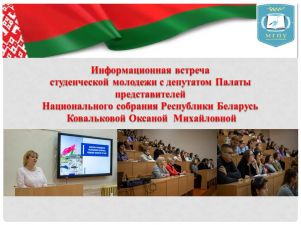 ИНФОРМАЦИОННАЯ ВСТРЕЧА СТУДЕНЧЕСКОЙ МОЛОДЕЖИ С ДЕПУТАТОМ ПАЛАТЫ ПРЕДСТАВИТЕЛЕЙ НАЦИОНАЛЬНОГО СОБРАНИЯ РБ О.М.КОВАЛЬКОВОЙ