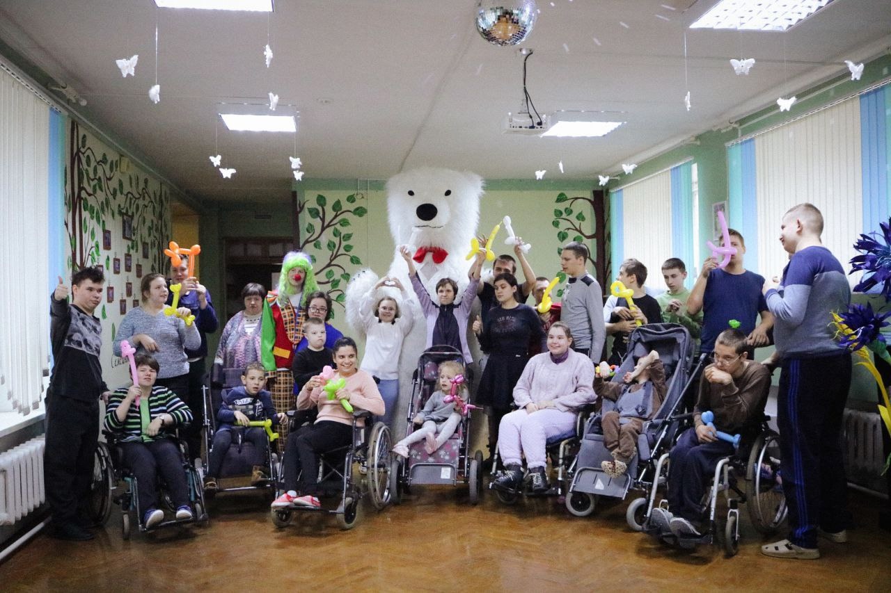 Вместе со студентами – «веселыми клоунами», дети и молодые люди с особенностями развития прекрасно провели время и получили много позитивных эмоций. На мероприятии звучала веселая музыка, были конкурсы и танцевальные задания.