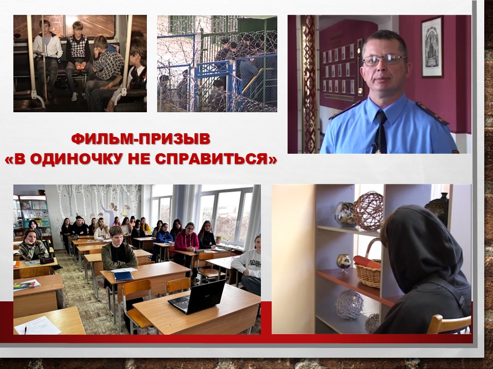 Алина, 2 курс 4 группа: «Видефильм «В одиночку не справиться» носит профилактический характер. Он наглядно показывает, чем грозит любая связь с наркотиками, что происходит с людьми, употребляющими наркотические вещества. Информация является полезной для нынешнего времени».