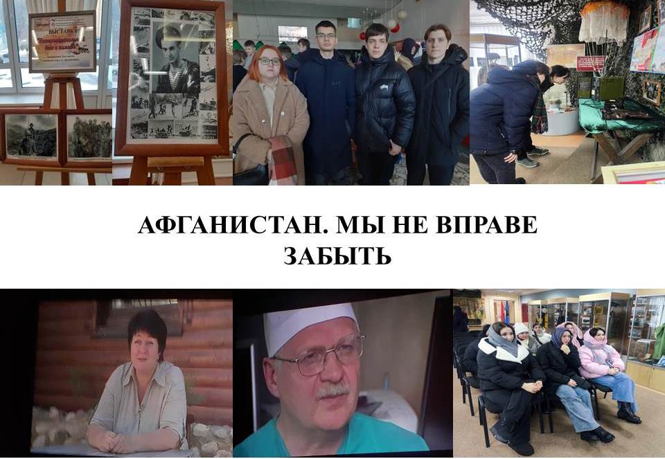 Ко Дню памяти воинов-интернационалистов на технолого-биологическом факультете УО МГПУ им. И.П.Шамякина прошли мероприятия различного формата: видеолекторий «Афганистан – живая память», тематическая выставка фотографий военных и послевоенных лет «Афганская война в судьбе моих близких», информационные часы, посвященные истории Афганской войны «Афганская война 1979 – 1989 гг.», «Трагедия и доблесть Афгана», «Далекое эхо Афганской войны», посещение тематической выставки в ГУК «Мозырский объединенный краеведческий музей».
