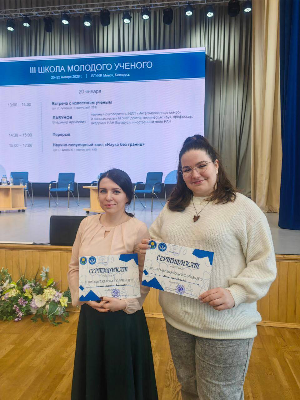 Активное участие в работе Школы приняли аспиранты и молодые ученые Мозырского государственного педагогического университета имени И. П. Шамякина. Наш университет представили Ирина Жинко, аспирант кафедры педагогики, преподаватель кафедры технологического образования, и Анастасия Соломаха, аспирант кафедры педагогики.