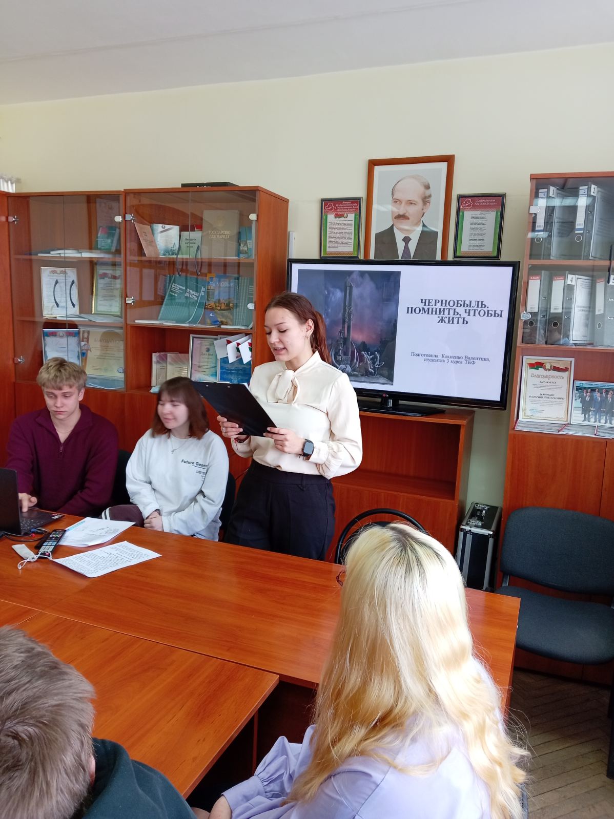Исторический контекст представила студентка 3-го курса технолого-биологического факультета Ю. Попко. В своём докладе «История аварии на Чернобыльской АЭС» Юлия Попко провела краткий экскурс в события 26 апреля 1986 года, напомнив хронологию той роковой ночи и масштабы беды, навсегда изменившей судьбы миллионов людей.