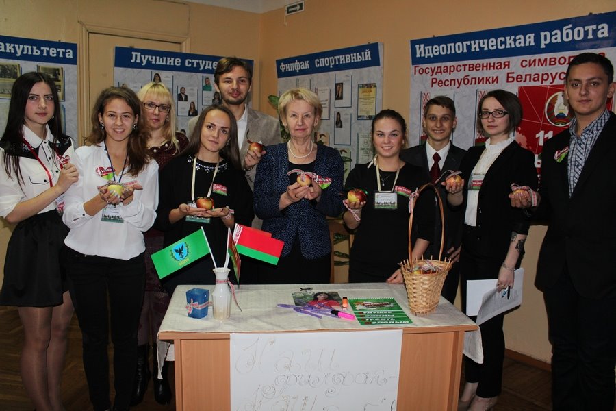 С энтузиазмом студенты факультета поучаствовали в поздравительной акции «Учителями славится наша страна» (отв. Ранда И., Силинец В.). Совместно с профкомом студентов университета были поздравлены ветераны педагогического труда: Журавская Л.В., Сидорец В.С., Нуждина Т. С., Масловский З. С., Малюк А.К., Кацапов Л.А., Щур Т.Н., Никитина Т.А. С нескрываемой радостью студенты еще за неделю до мероприятия взялись за подготовку творческого проекта «Молодежь – будущее страны» (отв. Карпова К.) и справились с ним на «отлично». Значительный интерес среди преподавателей вызвало блиц-интервью «Настоящий учитель – это…» (отв. Горбачук В., Григорян Д.). И, конечно же, мы не забыли о первокурсниках. Специально для них были подготовлены инфо-сессия «Выбери жизнь» (отв. Латышев К.) и викторина «Беларусь – мая радзiма» (отв. Ширко А.). На факультете была проведена молодёжная акция «Наш филфак – наш выбор» (отв. Кунгер К., Ходунькова Ю.). Будущие педагоги, как никто, должны принимать участие в волонтерских проектах. Отдельное спасибо за ваш вклад в такое нужное и полезное дело, как проект «Свет добра: помощь детям с ОПФР».
