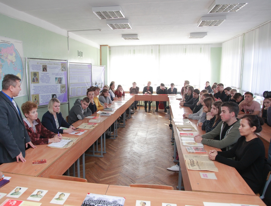 26-5      22 октября 2018 года кафедрой истории и обществоведческих дисциплин организован и проведен научно-практический семинар «Комсомол и его историческое значение», посвященный 100-летию ВЛКСМ. С приветственным словом к участникам семинара обратились проректор по воспитательной работе УО МГПУ им. И.П. Шамякина Щур С.Н., заместитель председателя Мозырской районной организации ветеранов Артеменко О.Г., декан филологического факультета Сыманович Т.Н.