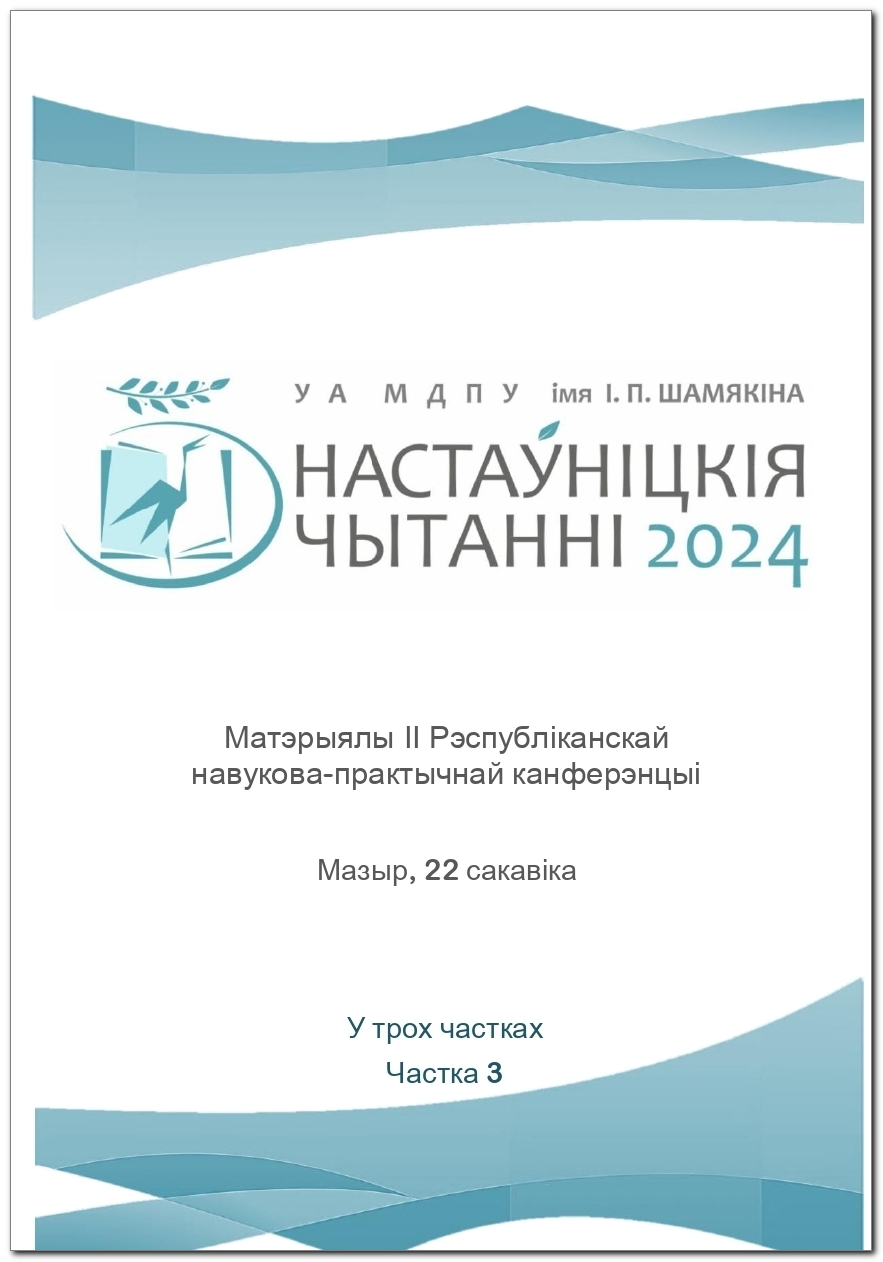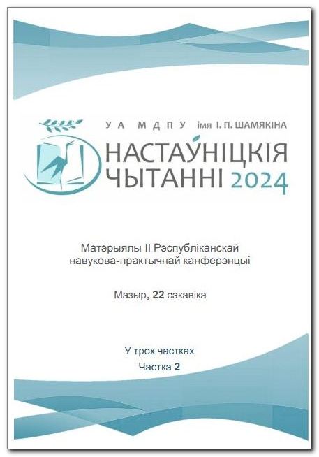 Настаўніцкія чытанні : матэрыялы II Рэсп. навук.-практ. канф., Мазыр, 22 сак. 2024 г. У 3 ч. Ч. 2 / УА МДПУ імя І. П. Шамякіна ; рэдкал.: В. М. Наўныка (адк. рэд.) [і інш.]. – Мазыр : МДПУ імя І. П. Шамякіна, 2024. – 296 с.