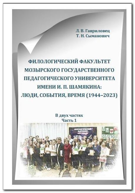 Филологический факультет Мозырского государственного педагогического университета имени И. П. Шамякина: люди, события, время (1944–2023) : моногр. В 2 ч. Ч. 1 / Л. В. Гавриловец, Т. Н. Сыманович ; под ред. Т. Н. Сыманович. – Мозырь : МГПУ им. И. П. Шамякина, 2024. – 270 с.