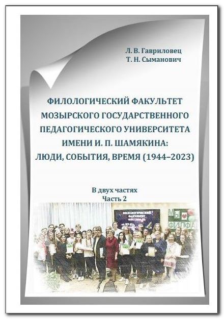 Филологический факультет Мозырского государственного педагогического университета имени И. П. Шамякина: люди, события, время (1944–2023) : моногр. В 2 ч. Ч. 2 / Л. В. Гавриловец, Т. Н. Сыманович ; под ред. Т. Н. Сыманович. – Мозырь : МГПУ им. И. П. Шамякина, 2024. – 101 с.