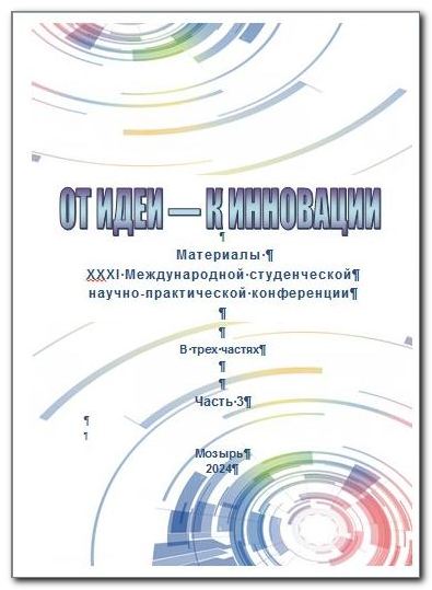 От идеи – к инновации : материалы XXXI Междунар. студ. науч.-практ. конф., Мозырь, 19 апр. 2024 г. В 3 ч. Ч. 3 / УО МГПУ им. И. П. Шамякина ; редкол.: И. О. Ковалевич (отв. ред.) [и др.]. – Мозырь : МГПУ им. И. П. Шамякина, 2024. – 275 с.
