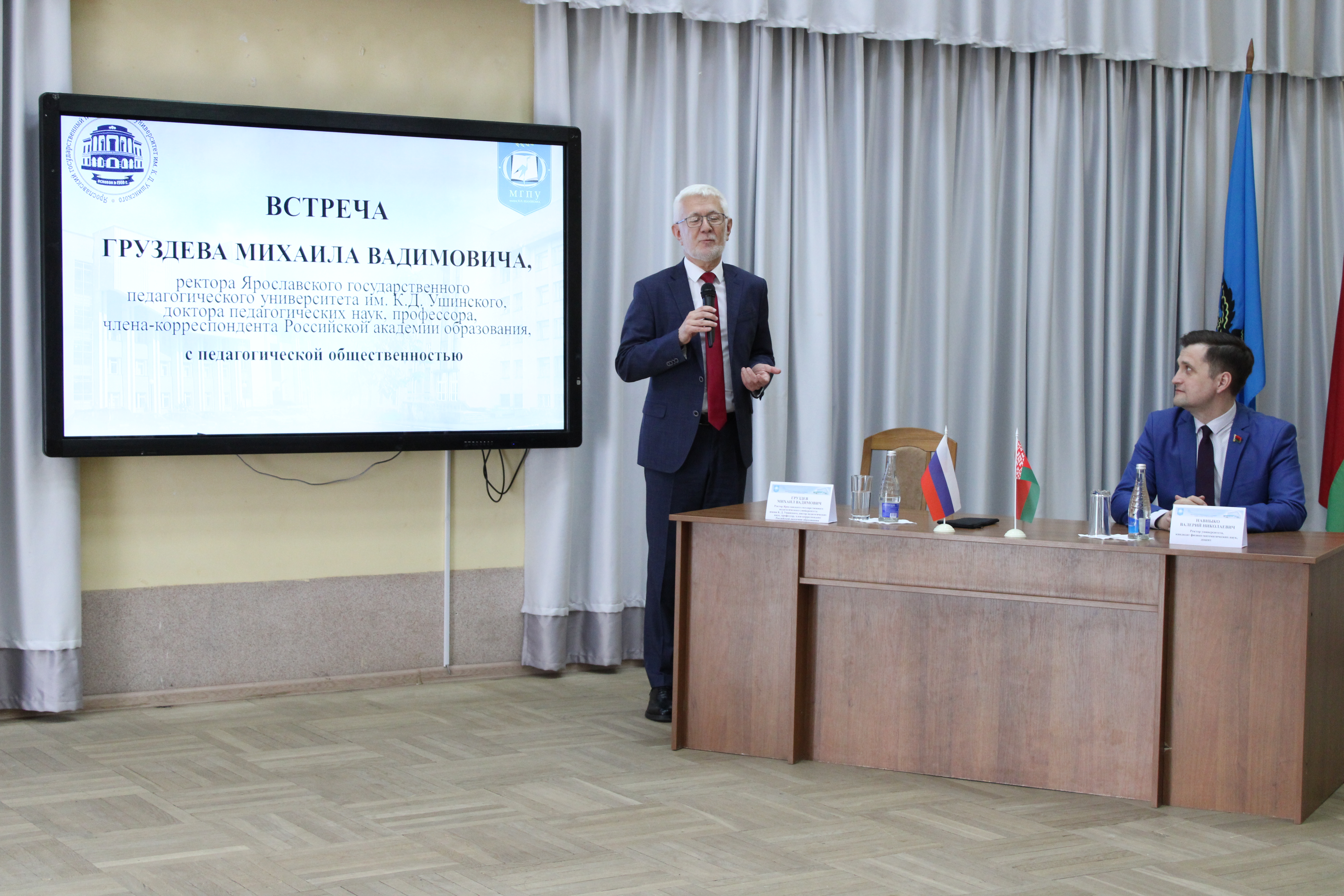 3 апреля 2026 года на базе Мозырского государственного педагогического университета имени И.П. Шамякина состоялась встреча с ректором Ярославского государственного педагогического университета им. К.Д. Ушинского, доктором педагогических наук, профессором, членом-корреспондентом Российской академии образования Михаилом Вадимовичем Груздевым.