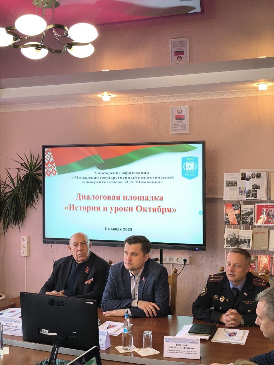 Открыл диалоговую площадку ректор университета Валерий Николаевич Навныко, определив ключевые моменты и социальную значимость преобразований, которые произошли в результате Октябрьской революции, а также акцентировал внимание, что завоевание революции создали основу белорусской государственности.