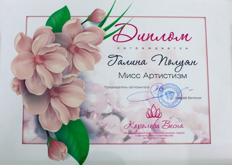 23 мая в Концертном зале «Prime Hall» (г. Минск) состоялся национальный финал XXVI Международного межвузовского конкурса грации и артистического мастерства «Королева Весна – 2017». За право стать лучшей боролись 15 участниц. Конкурсная программа включала себя ряд испытаний, где девушкам предстояло продемонстрировать свою сценическую культуру, умение общаться с аудиторией, коммуникабельность, знание этикета, чувство юмора, грацию, артистическое мастерство и внешние данные.