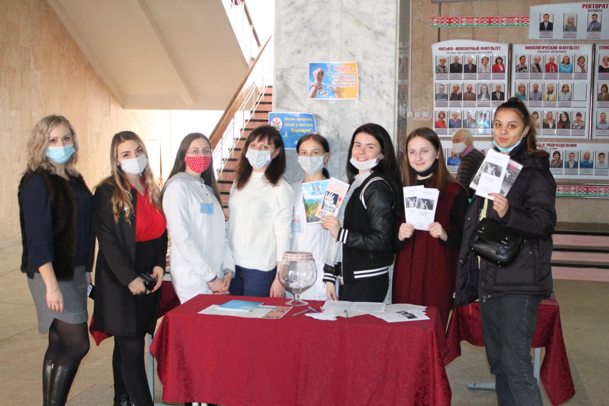 В рамках недели по профилактики наркомании в учреждении образования «Мозырский государственный педагогический университет имени И.П. Шамякина» совместно с Мозырским зональным ЦГЭ и УО «Мозырский государственный медицинский колледж» 01.03.2021 была проведена информационная акция «Скажи наркотикам – НЕТ!». Организаторы демонстрировали профилактические видеоролики, проводили блиц-опросы о вреде наркомании, анкетирование, раздавали буклеты и эмблемы против наркотиков.