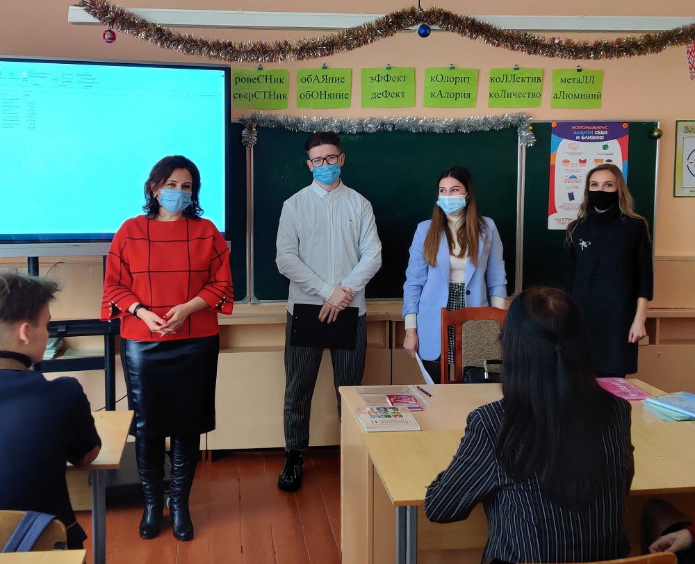 11.01.2022 г. в ГУО «Октябрьская районная гимназия» и ГУО «Средняя школа №2 г.п. Октябрьский» прошли профориентационные мероприятия. В них принли участие доцент кафедры иностранных языков и МПИЯ Яблонская О.Г. и преподаватель кафедры иностранных языков и МПИЯ Гриб Ж.В., рассказавшие будущим абитуриентам о преимуществах получения педагогического образования.