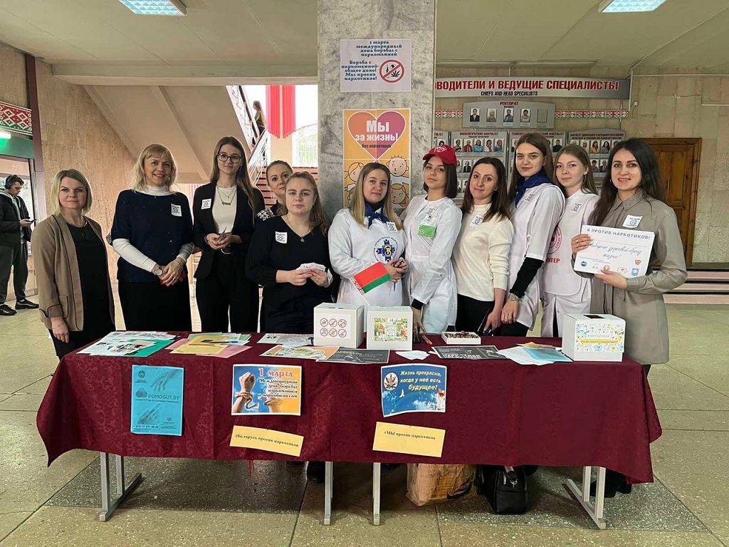 В рамках недели по профилактике наркомании в учреждении образования «Мозырский государственный педагогический университет имени И.П. Шамякина» совместно с Мозырским зональным ЦГЭ и УО «Мозырский государственный медицинский колледж» 01.03.2022 был проведен национальны й флешмоб #Беларусь против наркотиков. Организаторы демонстрировали профилактические видеоролики, проводили блиц-опросы о вреде наркомании, анкетирование, раздавали буклеты и эмблемы против наркотиков.