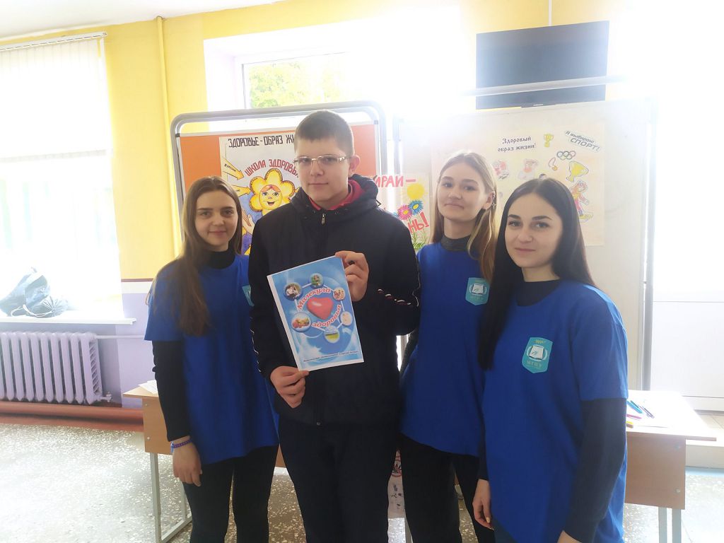 Во время акции волонтёры помогли школьникам разобраться в том, что вредно, а что полезно для здоровья, распространили информационно – профилактические буклеты и памятки, а с учащимися младших классов провели весёлую зарядку.