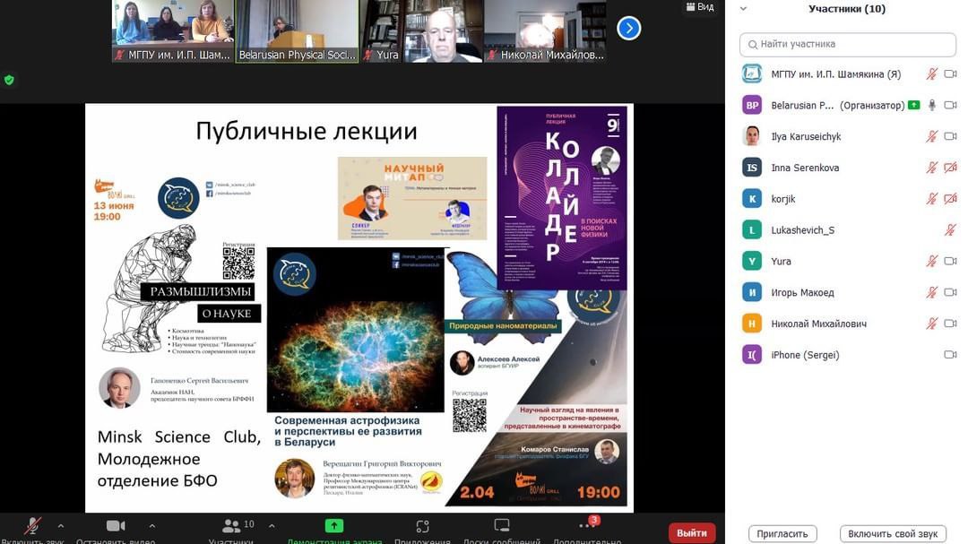 В режиме онлайн в работе съезда участвовали три делегата от нашего университета: заведующий кафедрой теоретической физики и прикладной информатики Овсиюк Е.М., доцент Давыдовская В.В., аспирант Блоцкая Д.С.