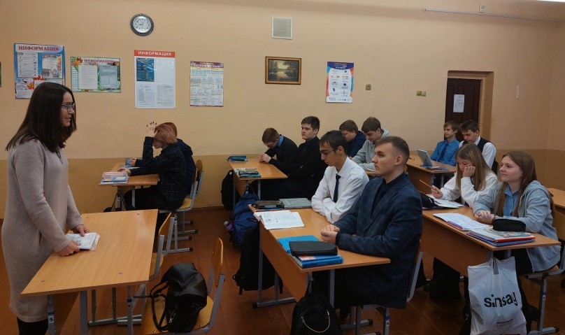 Лада Владимировна раздала информационные буклеты и познакомила учащихся со специальностями технолого-биологического факультета и правилами поступления. Рассказала об условиях проживания иногородних студентов в общежитиях университета и насыщенной творческой жизни студентов УО «Мозырский государственный педагогический университет им. И.П. Шамякина».