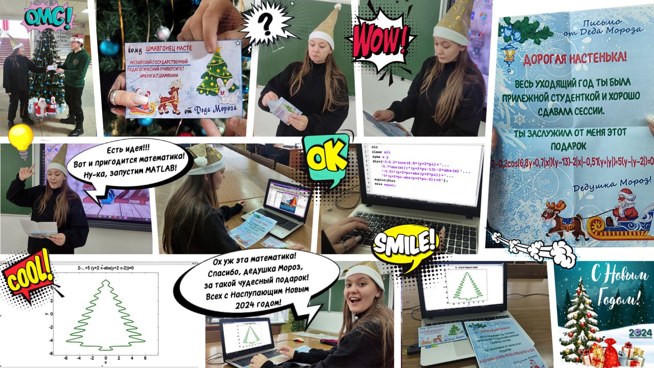 Студентка 3 курса 2 группы физико-инженерного факультета Шмавгонец Анастасия подготовила оригинальный и интересный комикс на новогоднюю тематику в раздел «Ох уж эта математика!». Работа была удостоена Диплома I степени.