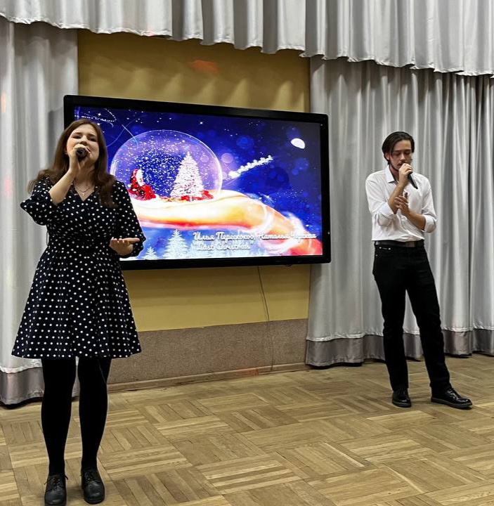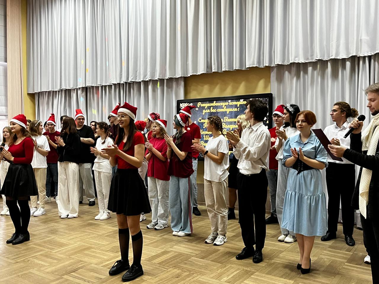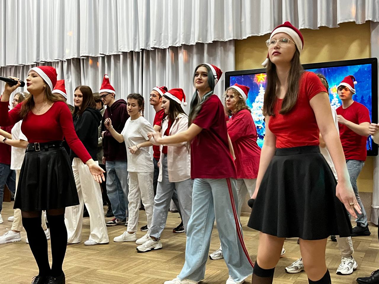 20.12.2023 года была представлена «Рождественская история», где звучали проникновенные стихотворения и трогательные истории в авторском прочтении Грищенко А., Царикевича И., Шоба Е., а также студента из числа иностранных граждан КНР Чэнь Минцзи. Настроение зрителям создавали новогодние музыкальные произведения в сольном исполнении Яковлевой А., Шецко А., а также в дуэтах – Перескокова И. и Чирской Н., Шецко А. и Чирской Н. Зажигательные хореографические постановки уже сложившихся танцевальных коллективов «Dream» (Алешкевич Е., Миланич А., Грищенко А., Голуб Я., Короткевич А., Козлова А.) и «Спарта» (Старжинская В., Костюченко А., Киселева В., Авраменко С., Чекренев В., Груздев И., Цыбульский И., Хуторцов А., Фиц А., Захаревич З.), а также завораживающий зимний вальс от «Magic moments» (Царикевич И., Злотник А., Бондарь С., Труханович Д., Пискун Н., Юхневич М. – руководитель и хореограф-постановщик) и флешмоб в конце мероприятия от всех 35 участников концерта подарили атмосферу праздника. Театральное мастерство проявили талантливые студенты (Анашкевич В., Шарапов Н.), разыграв драматическую сцену под звуки фортепиано и вокал Шецко А., доказав, что о любви можно говорить и без слов. Артистизм и сценическое искусство продемонстрировали Ивонин А. и Шоба Е. – главные действующие лица, рассказавшие всем «Рождественскую историю», которая закончилась загадыванием самых сокровенных желаний и верой в то, что они обязательно сбудутся.